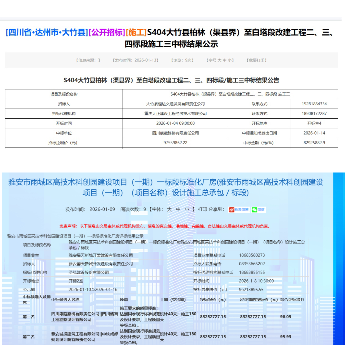 近日,四川康藏路橋有限責任公司在市場開拓方面取得重要進展,成功中標S404大竹縣柏林(渠縣界)至白塔段改建工程二、三、四標段施工項目,以及雅安市雨城區(qū)高技術(shù)科創(chuàng)園建設(shè)項目(一期),兩項目中標金額合計超過1.66億元,實現(xiàn)新年經(jīng)營工作“開門紅”。