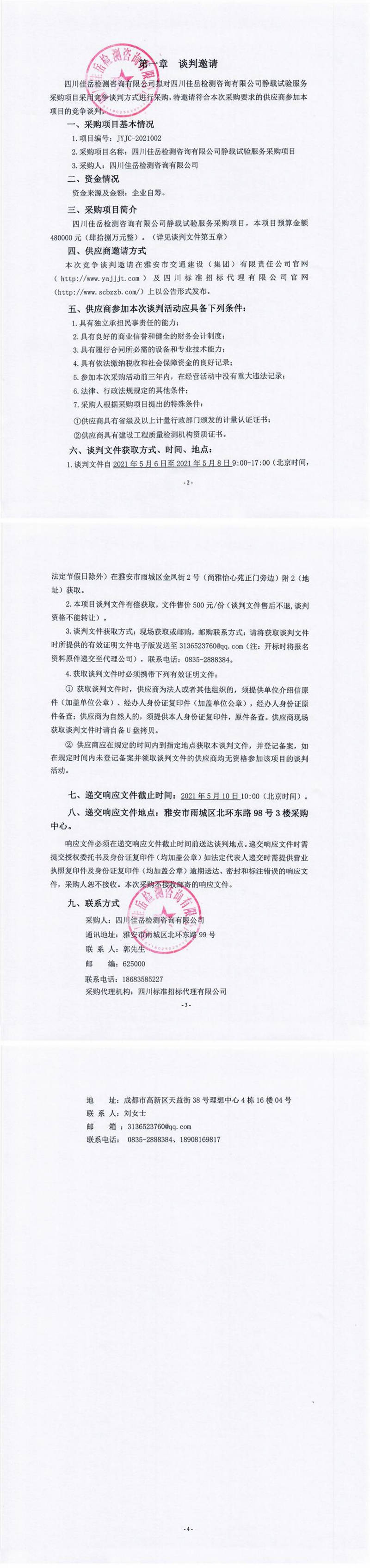 四川佳岳檢測咨詢有限公司靜載試驗服務(wù)采購項目競爭談判公告