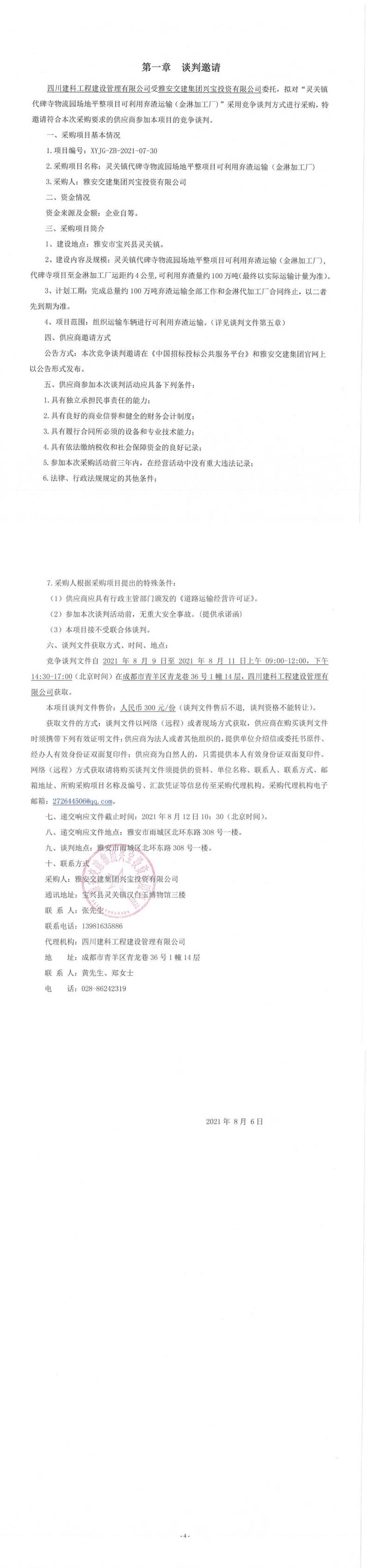 雅安交建集團(tuán)興寶投資有限公司靈關(guān)鎮(zhèn)代碑寺物流園場地平整項目可利用棄渣運輸(金淋加工廠)競爭談判公告