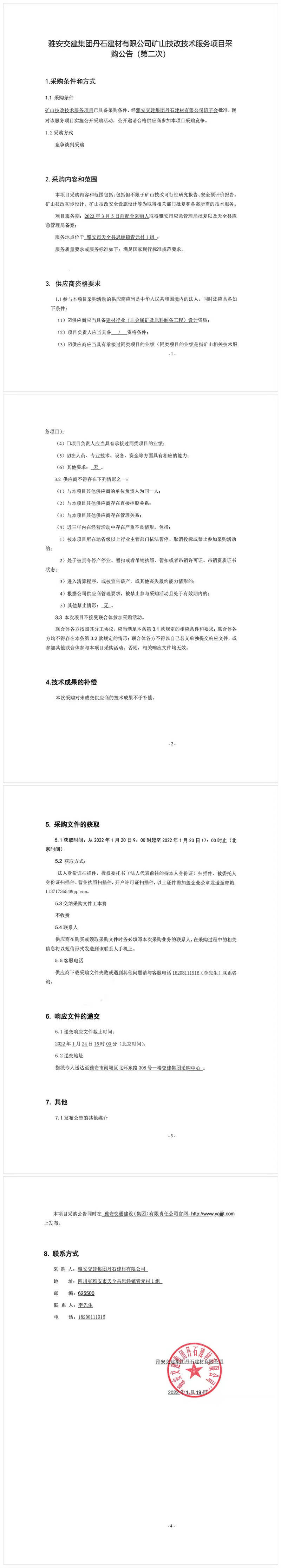 雅安交建集團(tuán)丹石建材有限公司礦山技改技術(shù)服務(wù)項目采購公告(第二次)