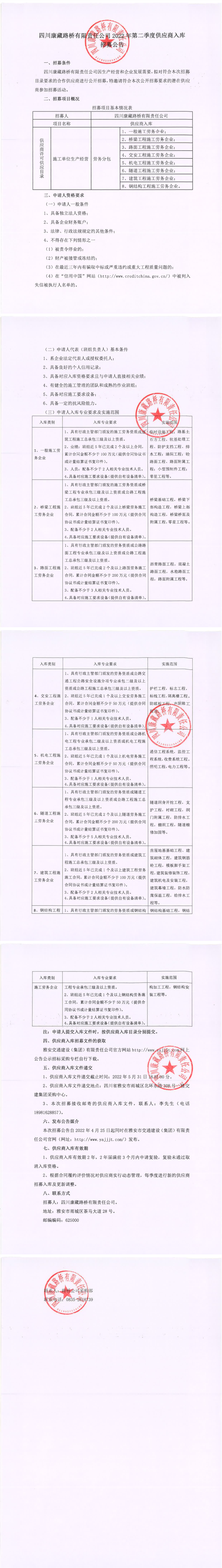 四川康藏路橋有限責(zé)任公司2022年第二季度供應(yīng)商入庫招募公告
