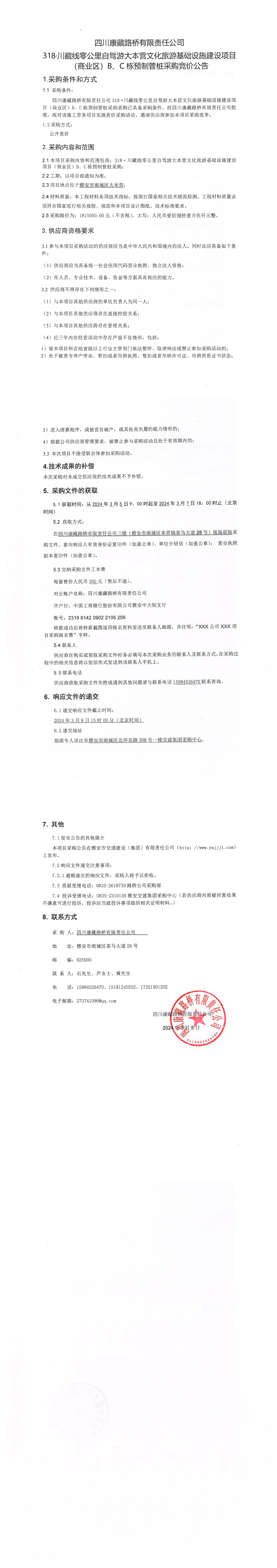 四川康藏路橋有限責(zé)任公司318·川藏公路零公里自駕游大本營文化旅游基礎(chǔ)設(shè)施建設(shè)項(xiàng)目(商業(yè)區(qū))B\C棟樁基施工勞務(wù)競價(jià)公告
